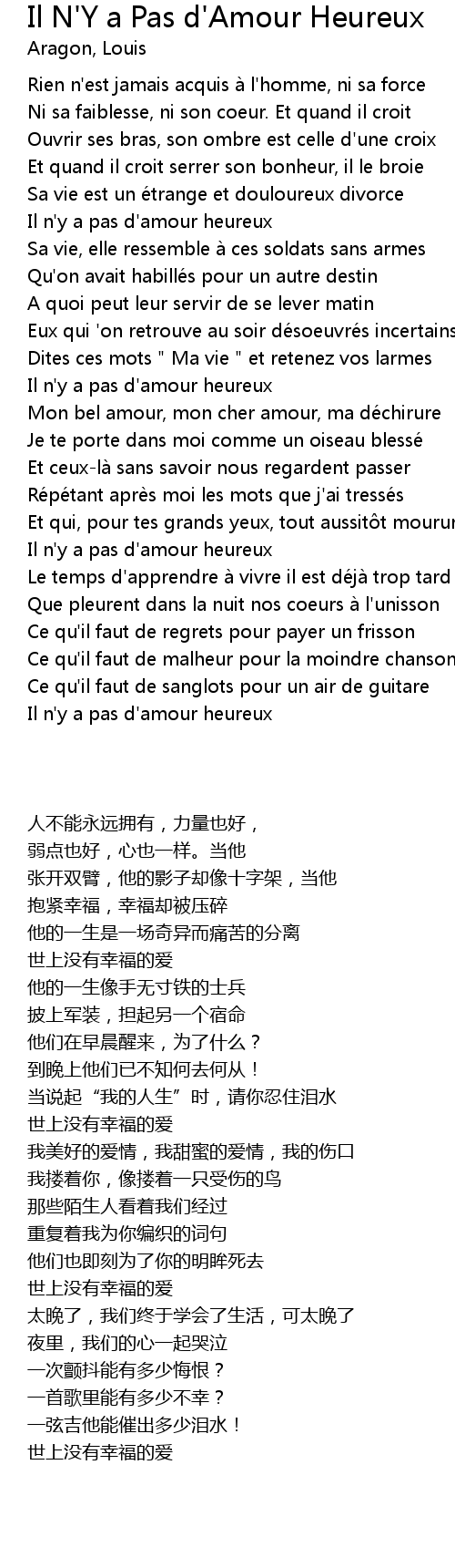 | [00:36.00] | Il n' y a pas d' amour heureux |