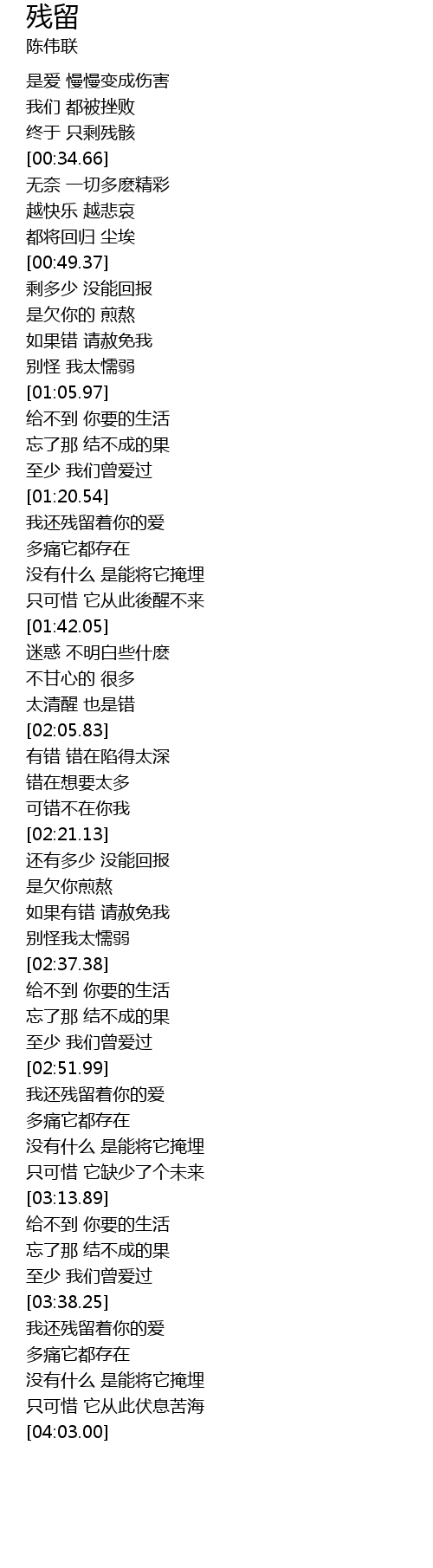 | [03:39.44] | 我还残留着你的爱 |