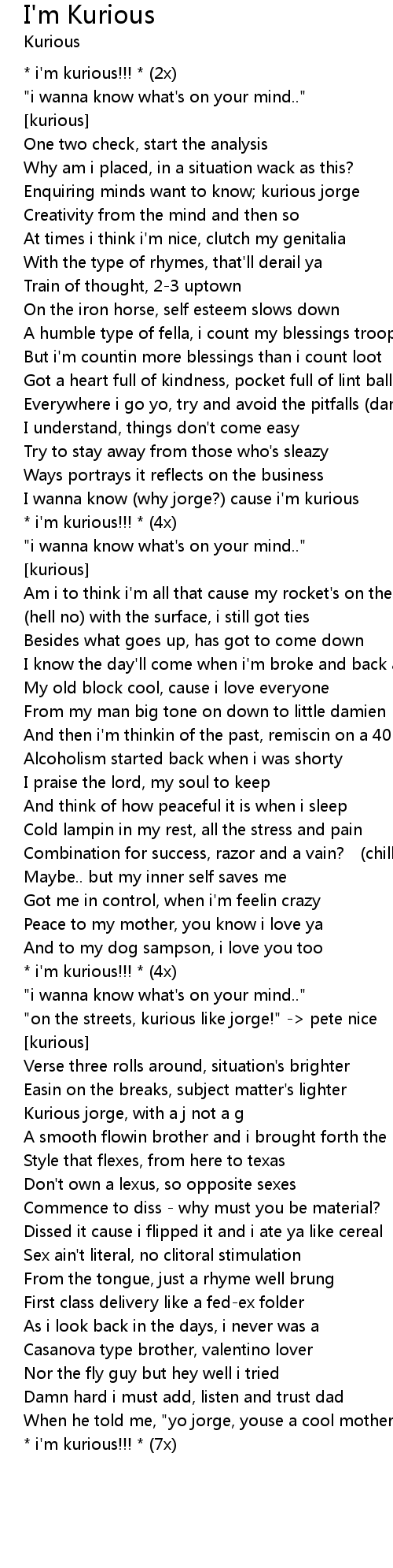 | "on the streets, kurious like jorge!" -> pete nice | |