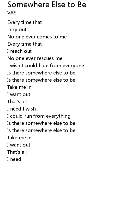 | Is there somewhere else to be | |