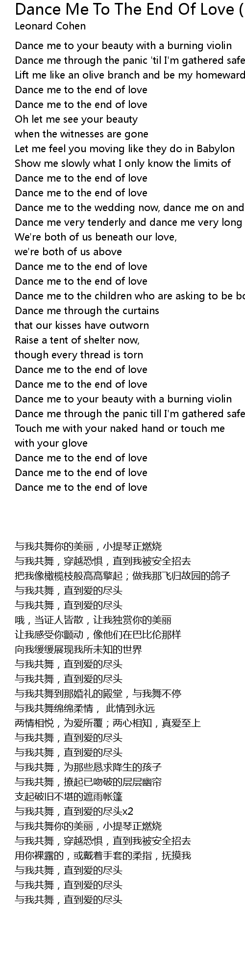 Dance Me To The End Of Love (Live in Fredericton, 2008) Lyrics
