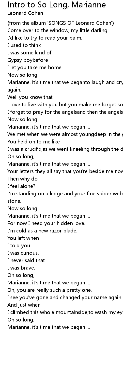 (from the album 'SONGS OF Leonard Cohen') |