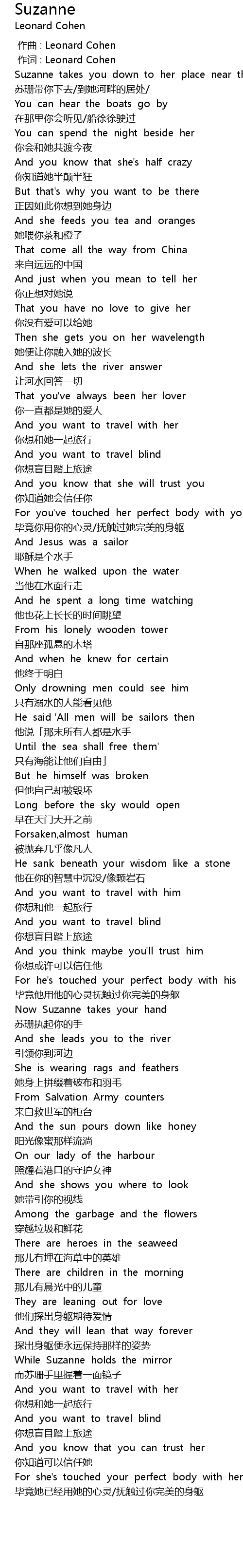 | [00:00.00] | 作曲 : Leonard Cohen |
