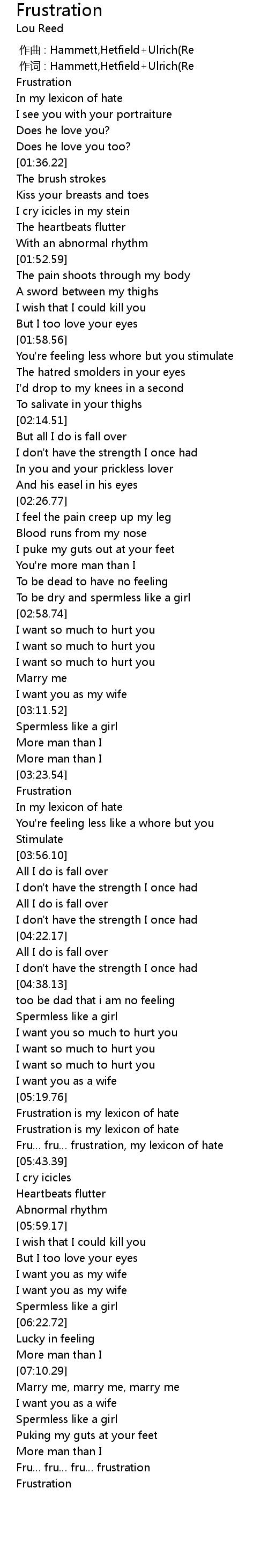 | [00:01.00] | 作词 : Hammett,Hetfield+Ulrich(Re |