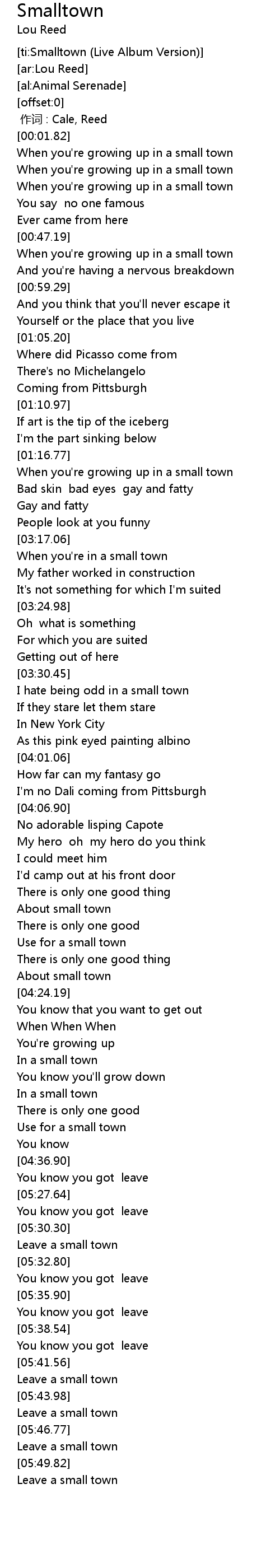 | [05:42.78] | Leave a small town |