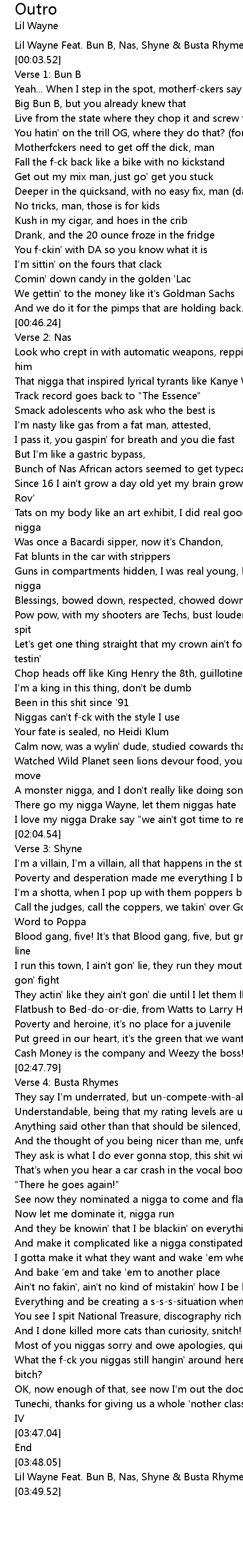 Lil Wayne Feat. Bun B, Nas, Shyne & Busta Rhymes - Outro |