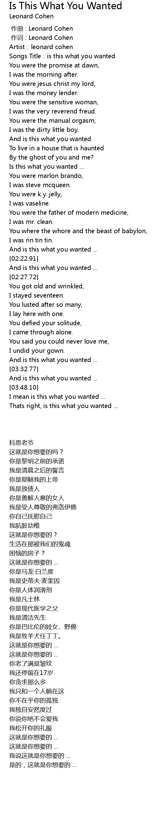 | [00:00.349] | zuò cí : Leonard Cohen |