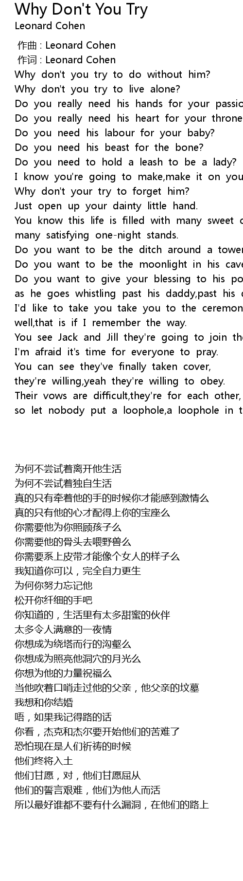 | [00:01.00] | zuo ci : Leonard Cohen |