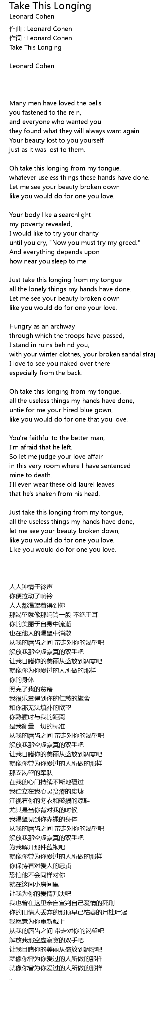 | 作词 : Leonard Cohen | |