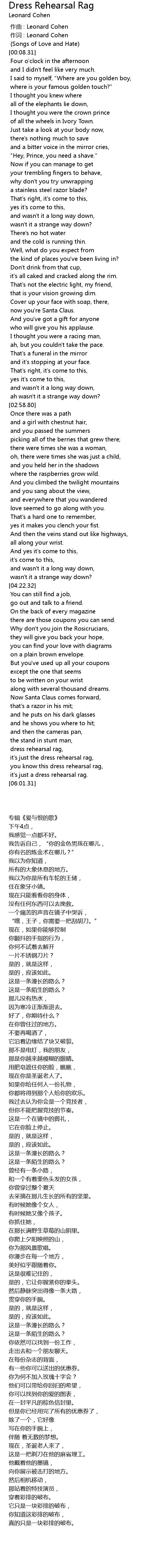 | [00:01.00] | zuò cí : Leonard Cohen |