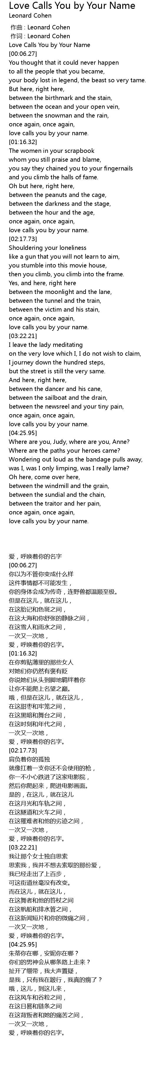 | [00:00.00] | 作曲 : Leonard Cohen |