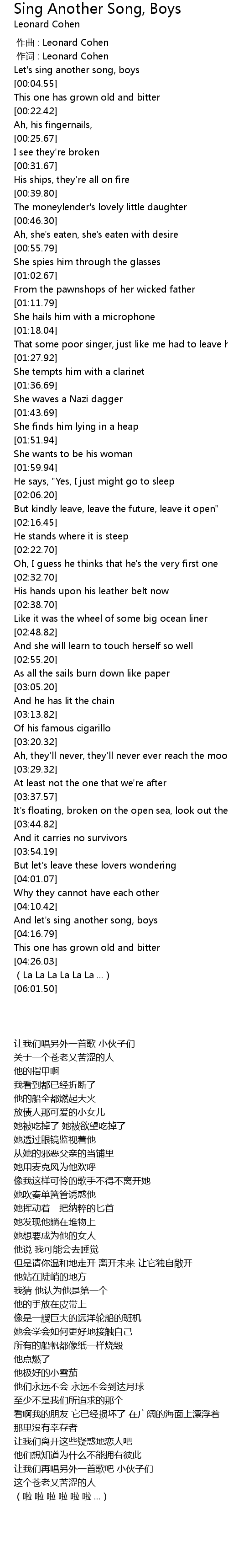 | [00:00.344] | zuò cí : Leonard Cohen |