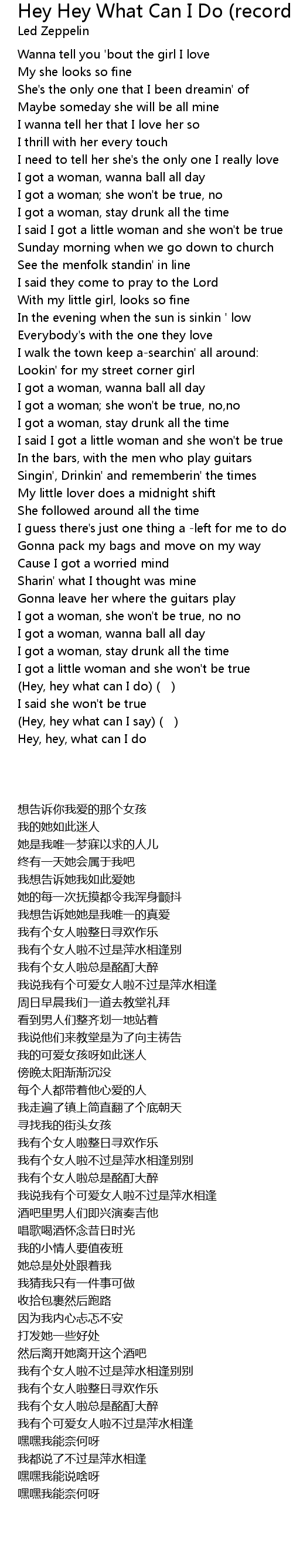 | Song | Hey Hey What Can I Do (recorded 1970, appeared on b-side to Immigrant Song\single, 1970) |