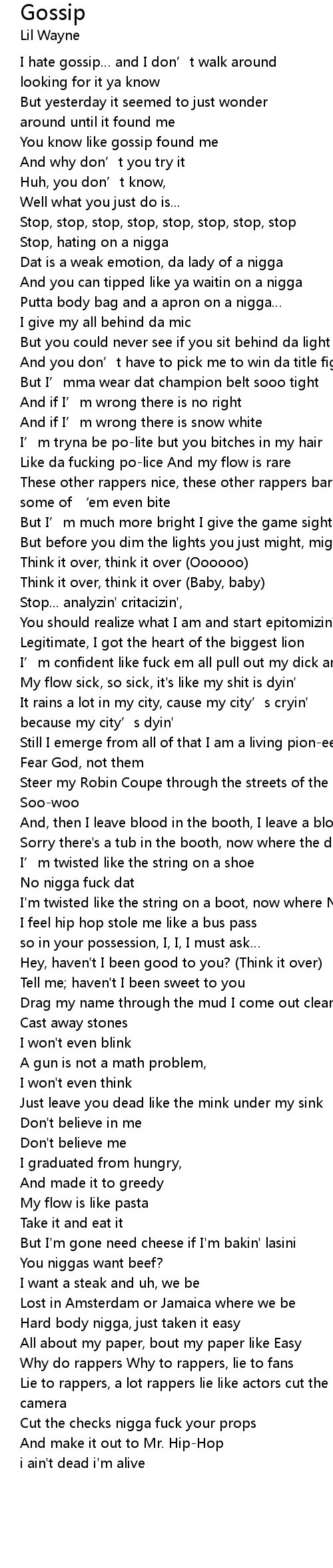 | [00:01.50] | I hate gossip… and I don’t walk around |