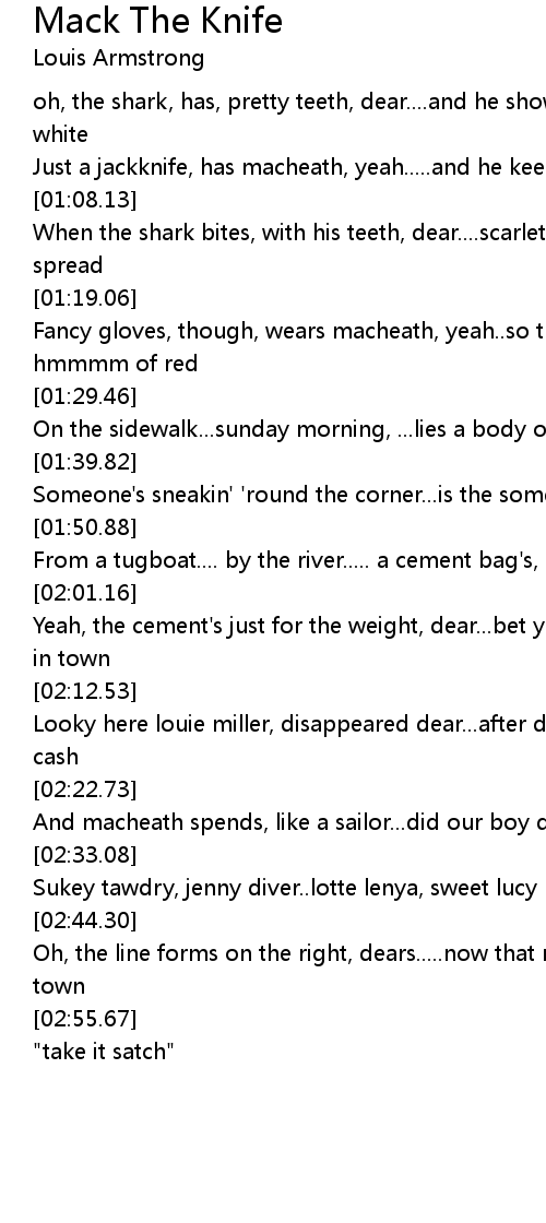 Just a jackknife, has macheath, yeah.....and he keeps it, out of sight |