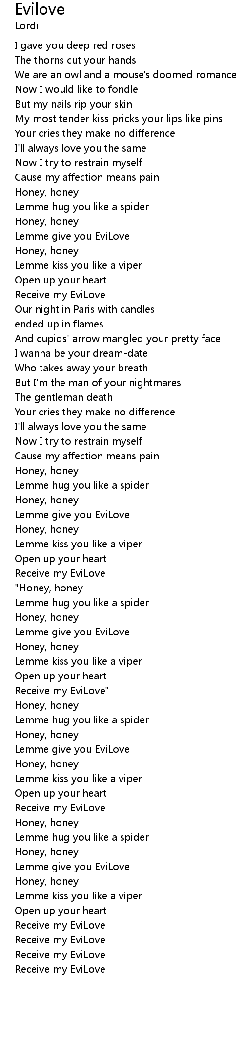 Receive my EviLove" |