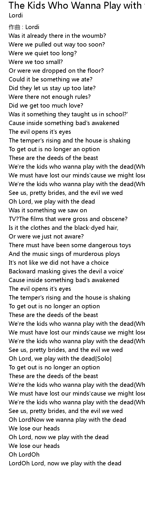 | We' re the kids who wanna play with the dead Whoahwoah! | |