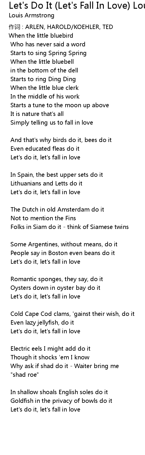 | Song | Let's Do It (Let's Fall In Love) Louis Armstrong |