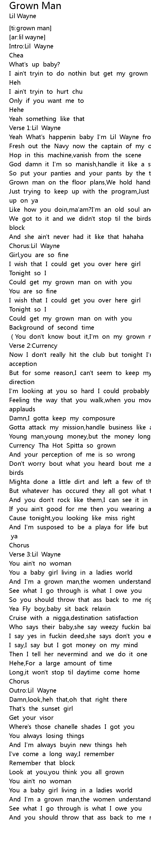| [00:21.80] | Yeah What's happenin baby I'm Lil Wayne from New Orleans |