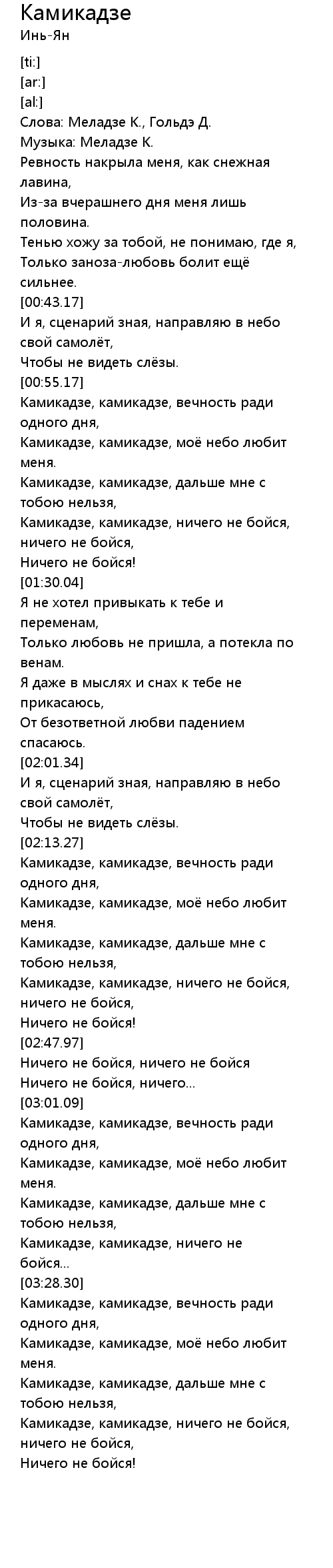 Камикадзе, камикадзе, ничего не бойся, ничего не бойся, |
