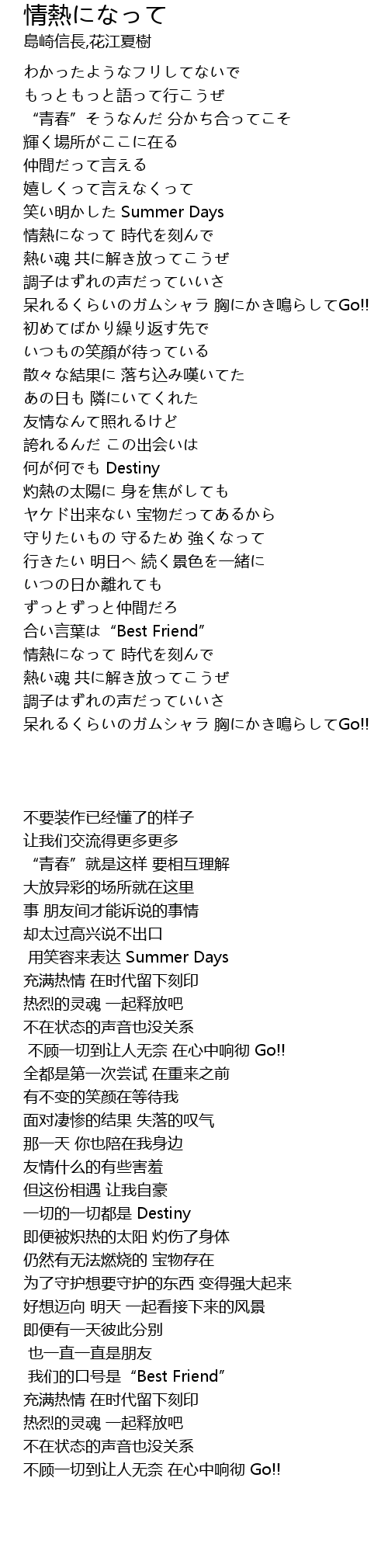 | [00:46.50] | 笑い明かした Summer Days |