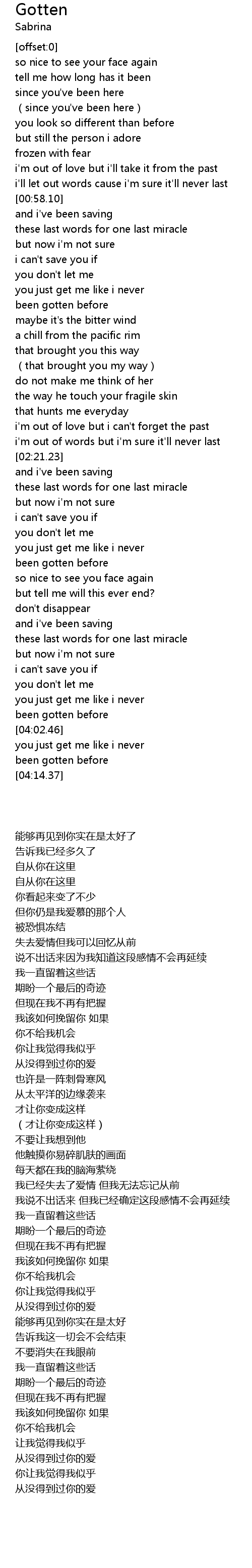 | [00:44.12] | i' m out of love but i' ll take it from the past |