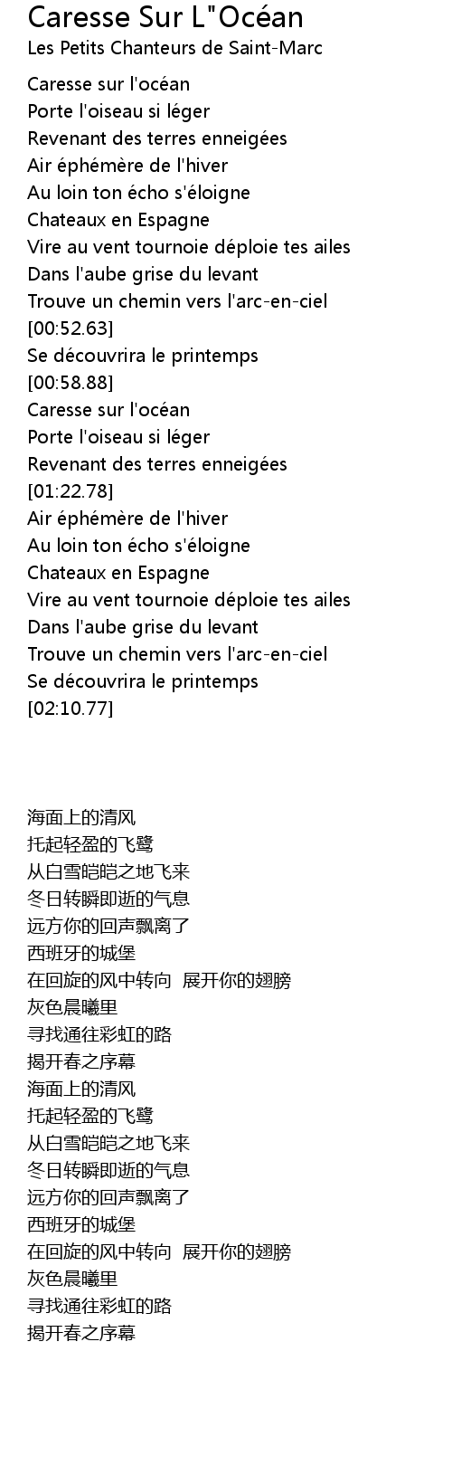| [00:12.56] | Porte l' oiseau si lé ger |