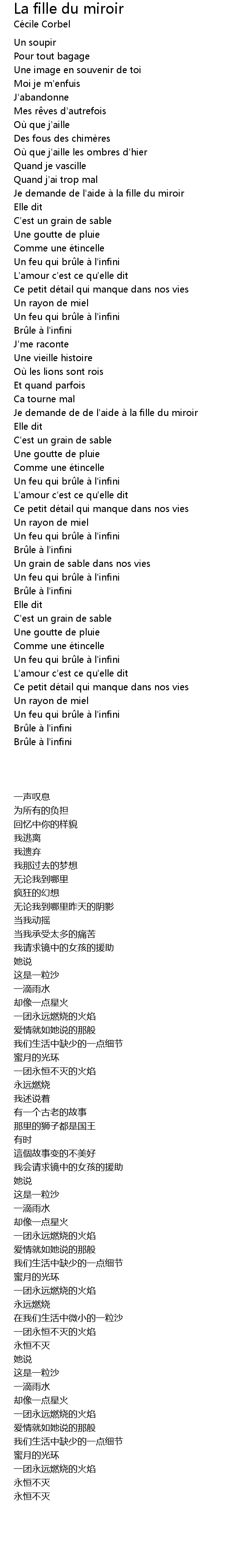 | [01:35.18] | Je demande de de l' aide à la fille du miroir |