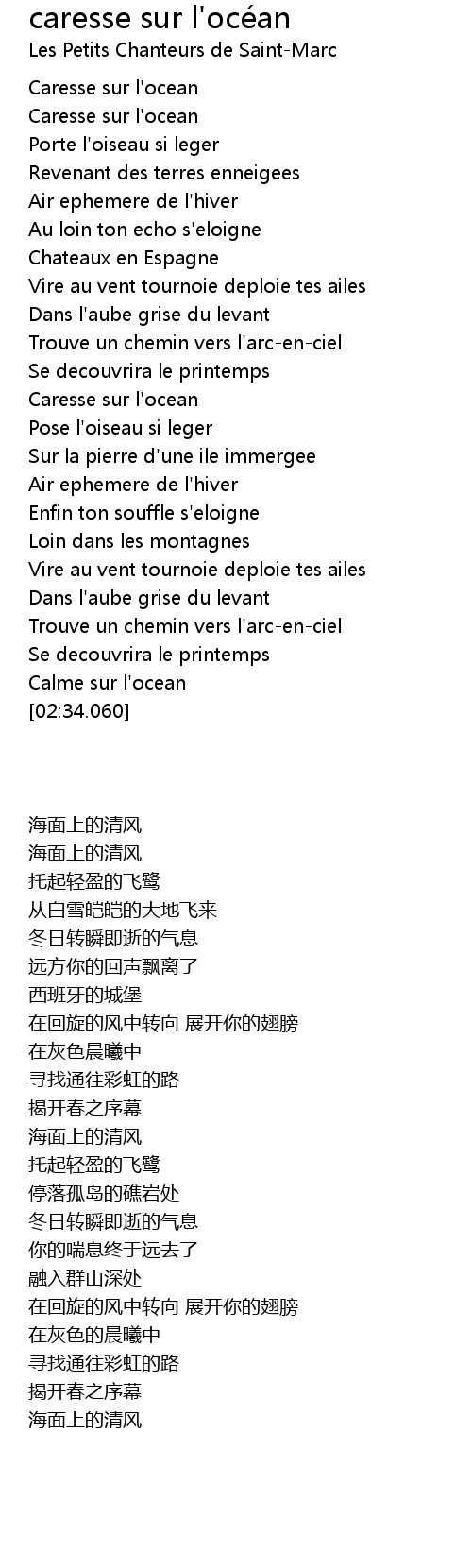 caresse sur l'océan caresse sur l' oce an Lyrics