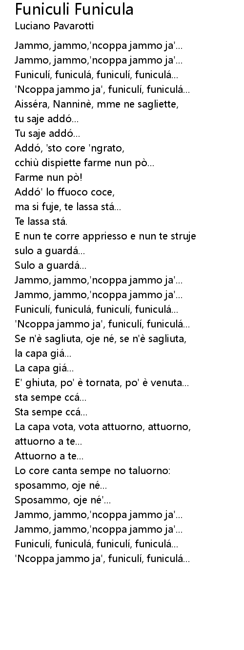 | ' Ncoppa jammo ja', funiculi, funicula... | |