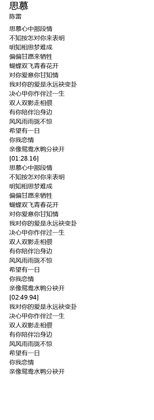 | [02:42.39] | 亲像鸳鸯水鸭分袂开 |