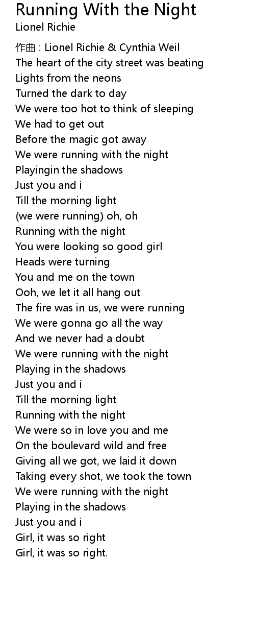 | zuò qǔ : Lionel Richie Cynthia Weil | |