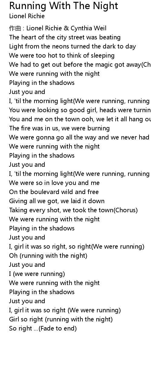 | I, ' til the morning light We were running, running with the night Bridge | |