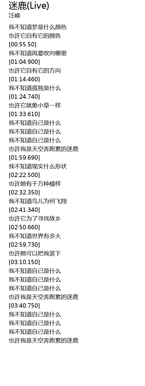 | [03:26.620] | 也许我是天空奔跑累的迷鹿 |
