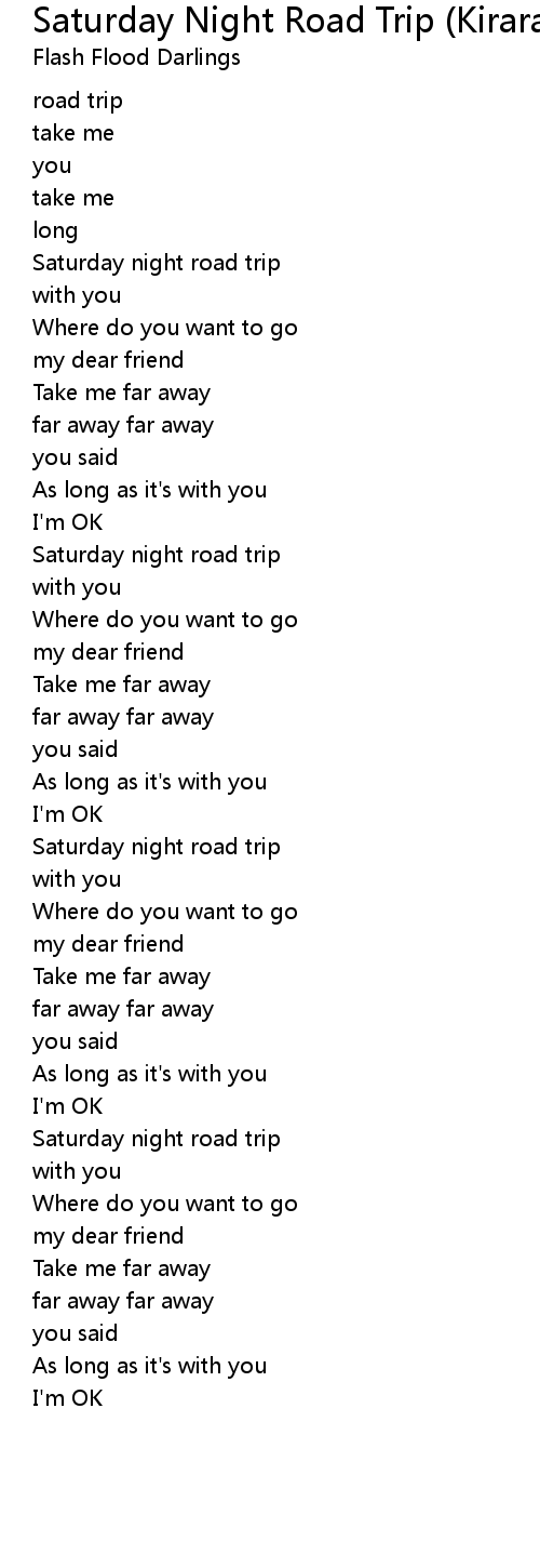 | Song | Saturday Night Road Trip (Kirara Remix) |