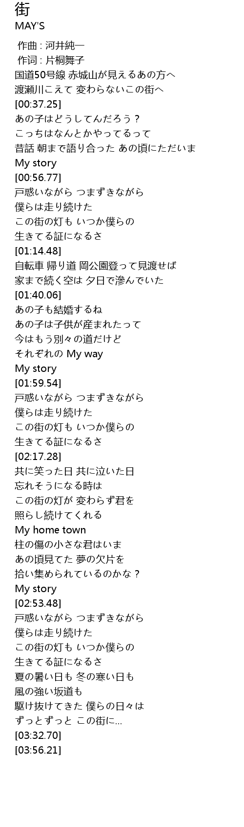 | [00:29.67] | 渡瀬川こえて 変わらないこの街へ |