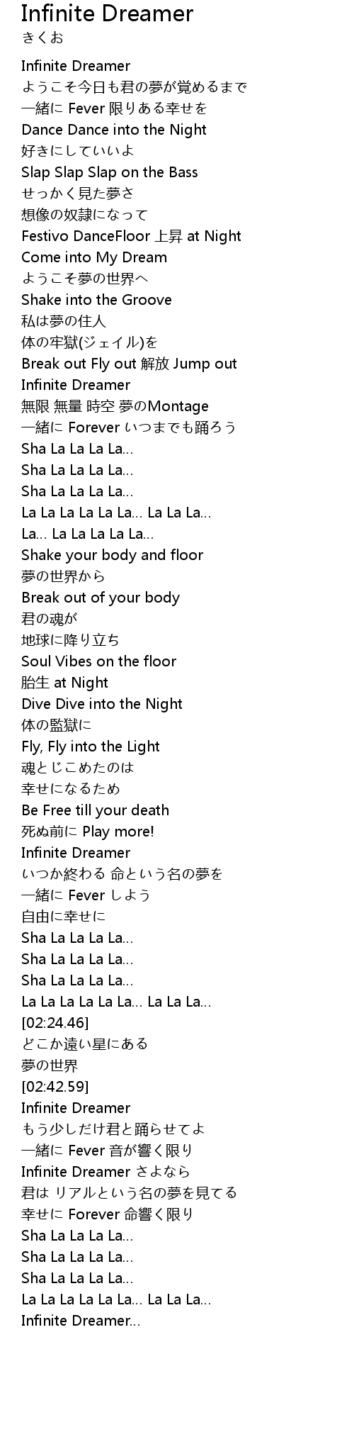 | [02:59.95] | Infinite Dreamer |