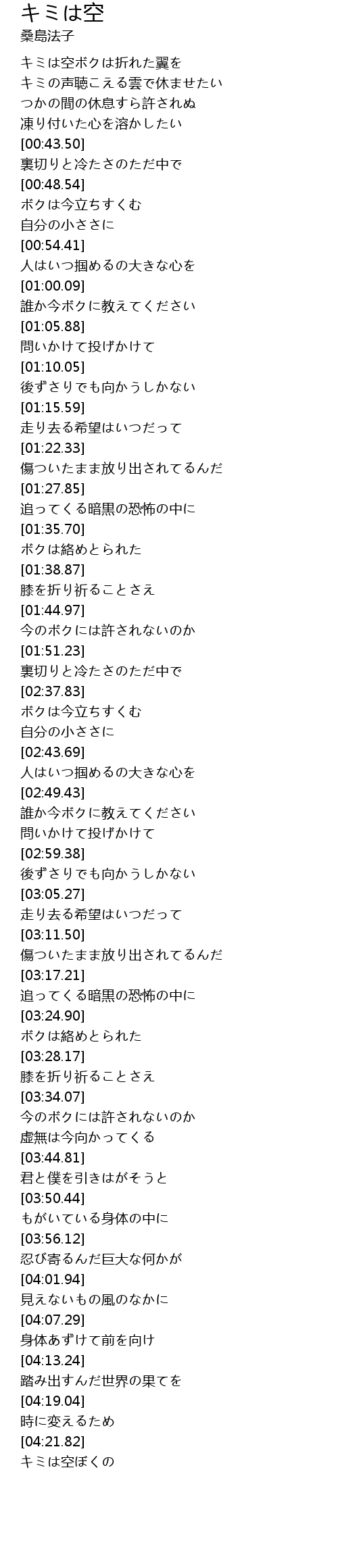 | [00:20.89] | キミは空ボクは折れた翼を |