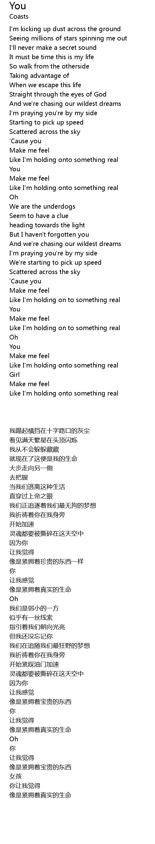 | [02:12.79] | Like I'm holding on to something real |