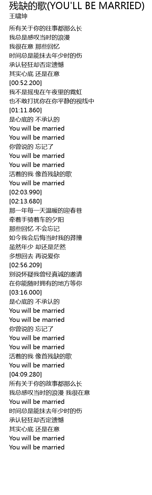 | [03:29.880] | You will be married |