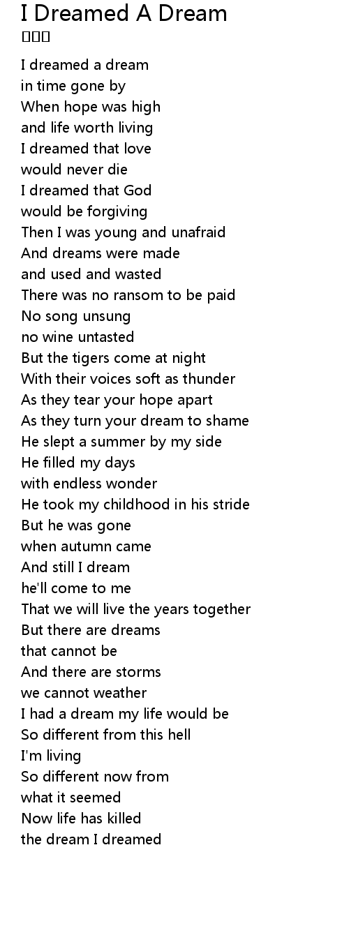 | I dreamed a dream | |