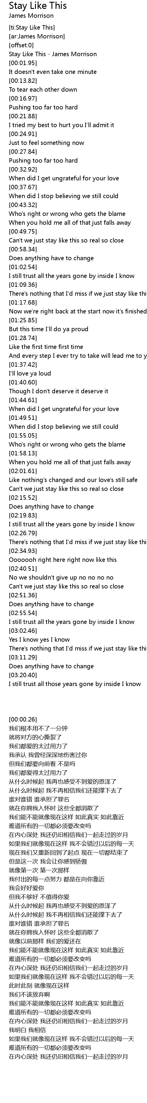 [ti:Stay Like This] |