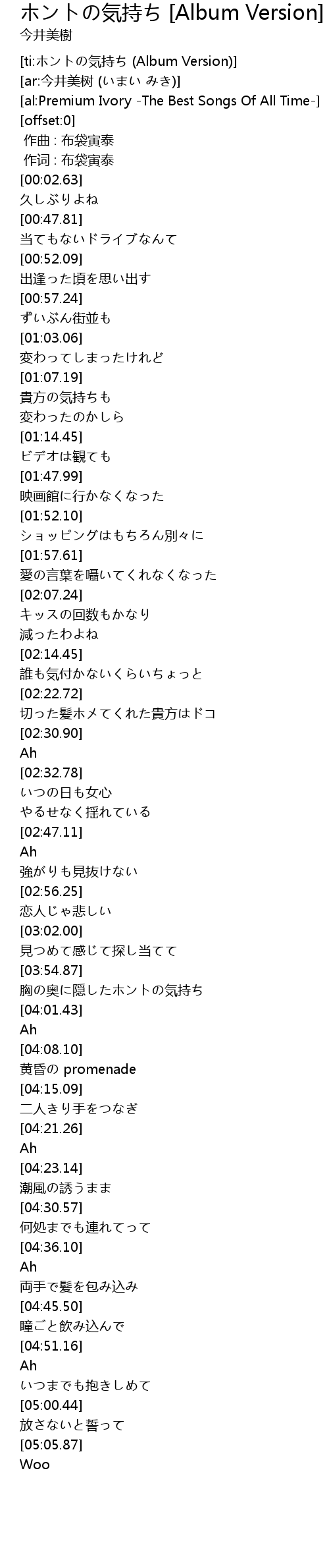 | [03:55.82] | 胸の奥に隠したホントの気持ち |