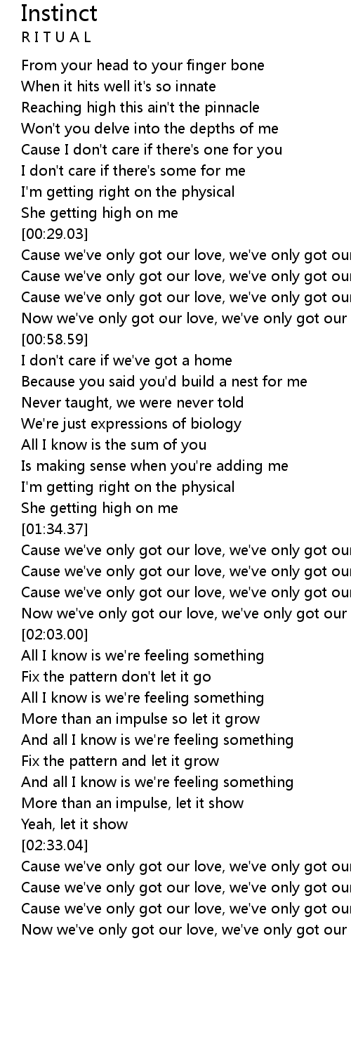 [02:41.40] Cause we've only got our love, we've only got our love and instinct