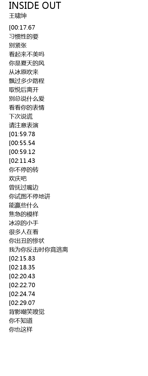 | [01:25.98][00:17.67] | Inside out |