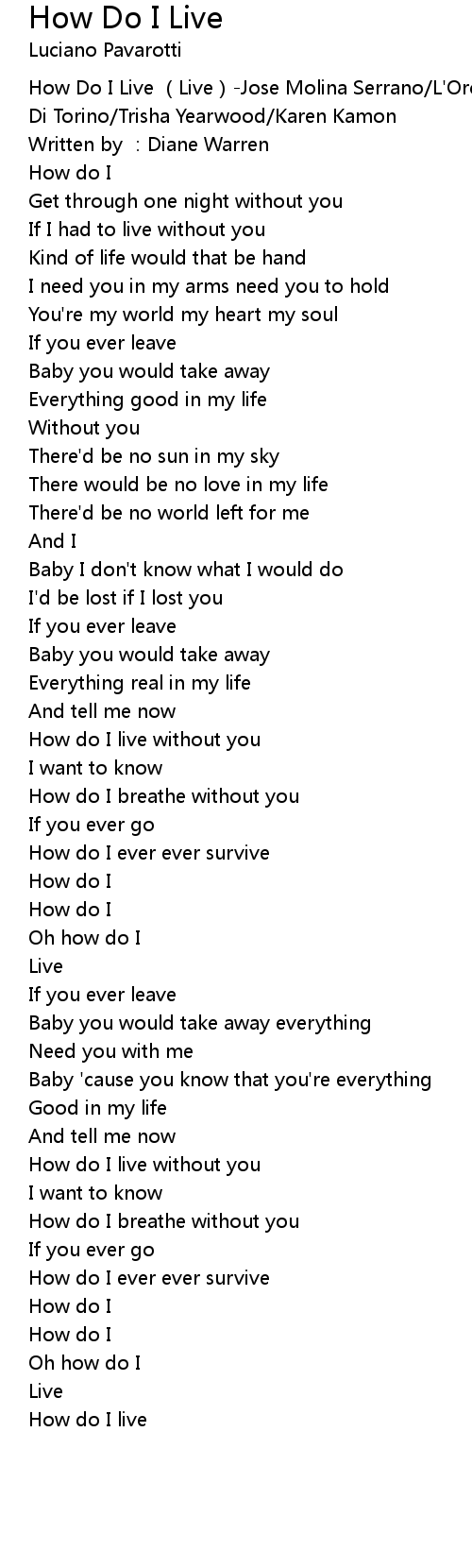 | [00:00.907] | How Do I Live Live Jose Molina Serrano L' Orchestra Filarmonica Di Torino Trisha Yearwood Karen Kamon |