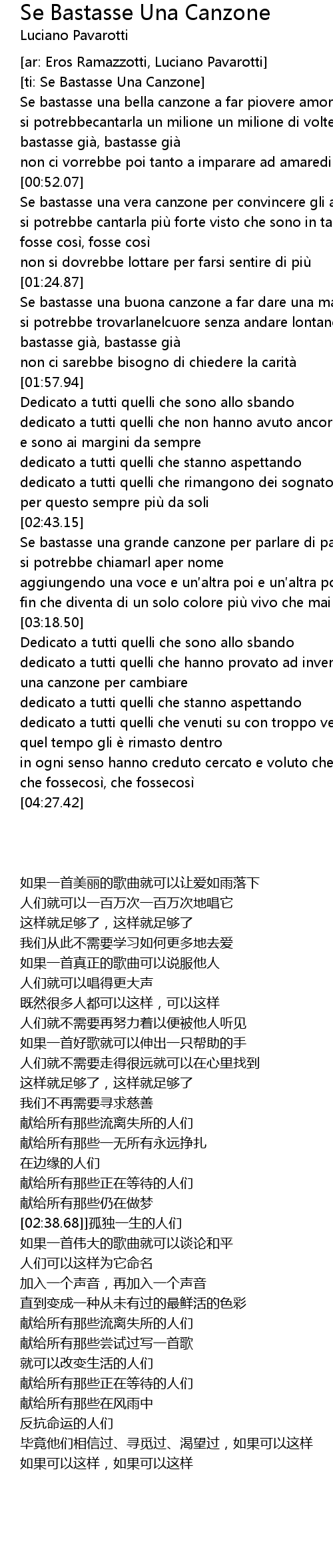 | [02:46.46] | Se bastasse una grande canzone per parlare di pace |