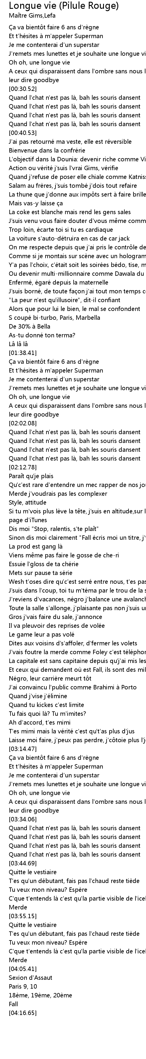 | [01:19.38] | J'suis borné, de toute façon j'ai tout mon temps comme Pernelle |