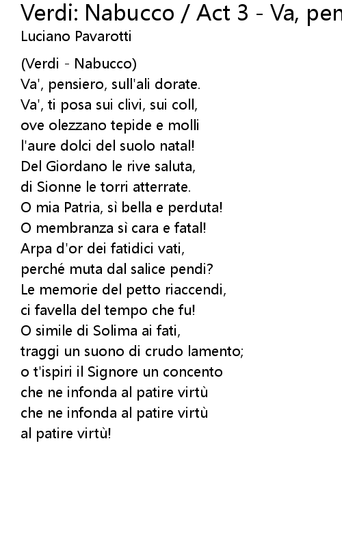 | Song | Verdi: Nabucco / Act 3 - Va, pensiero |