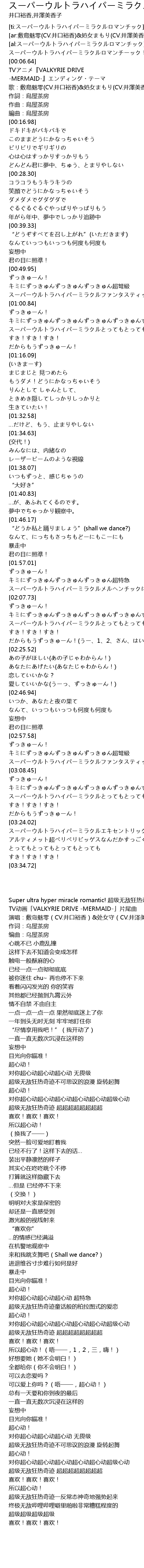 | [00:56.17] | スーパーウルトラハイパーミラクルファンタスティックにロマンチックでくらくらり |